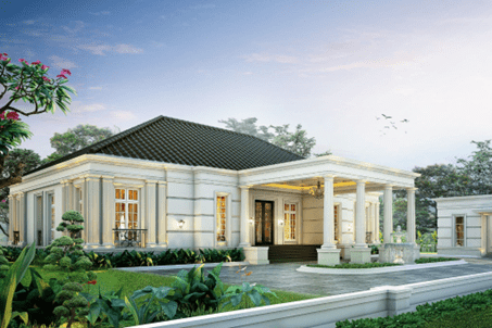 Rumah mewah satu lantai dengan sentuhan arsitektur Eropa sering kali menjadi pilihan utama bagi mereka